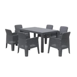 Malibu 7pc Wood Extendable Outdoor Patio Dining Set – Tan – Vifah