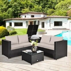 Costway 5PCS Patio Rattan Sectional Conversation Set Ottoman Turquoise