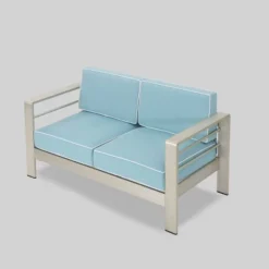 Cape Coral 2pc Aluminum Patio Loveseat & Coffee Table Set – Light Teal – Christopher Knight Home