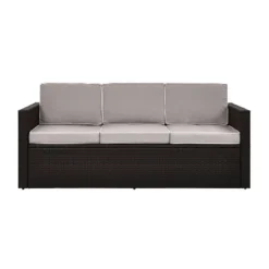 Palm Harbor Outdoor Wicker Sofa In Brown With Gray Cushions – Crosley