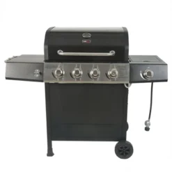 Grill Boss GBC1449M Outdoor BBQ 4 Burner Propane Gas Grill For Barbecue Cooking With Side Burner, Lid, Wheels, Shelves, & Bottle Opener, Black