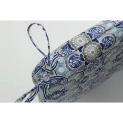 Set Of 2 Outdoor/Indoor Rounded Corners Seat Cushions Keyzu Medallion Mariner Blue – Pillow Perfect