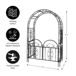 Plow & Hearth – Montebello Decorative Garden Arbor Trellis With Gate & Beautiful Scrollwork Design