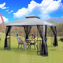 SUGIFT 10 Ft. X 10 Ft. White Gazebo Pop Up Canopy With Mesh Curtains