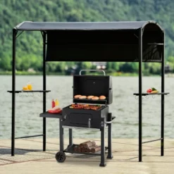 SUGIFT 7 Ft Outdoor Grill Gazebo BBQ Canopy With Side Awning In Gray