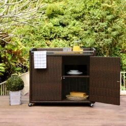 Teamson Home Wicker 154 Gallon Outdoor Deck Box For Cushions Storage, Gray