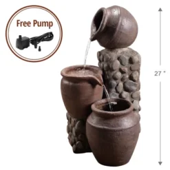 Teamson Home Outdoor Cascading Stacked Pot Waterfall Fountain, Brown
