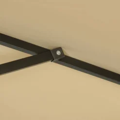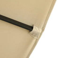 The Bimini 6.5-ft x 10-ft Rectangular Market Umbrella provides a smart and stylish way to shade your oval tables all summer long. This umbrella is designed for easy operation. Simply turn the crank handle until the canopy is completely open, then push-to-tilt the canopy to obtain your desired shade. The durable rust-resistant steel pole with the convenient push-to-tilt feature has a rich bronze-colored finish. The 6-rib canopy is covered in weather and fade-resistant polyester fabric and sports a single wind vent that allows air to escape freely and limits wind damage. Polyester fabric canopy backed with a 1 year warranty; 1 year warranty on pole and structure. Base sold separately.