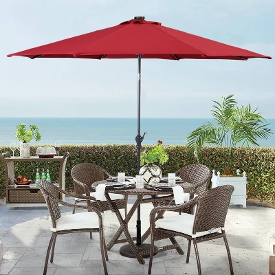This 10ft patio solar umbrella with crank and LED light is perfect for decorating the area around your house and keeping it with your family. Built-in 24 solar LED lights, can run for 6-7 hours. A 1.5” diameter iron pole and 8 sturdy ribs provide strong support . By the way, the crank allows you to effortlessly open and close the umbrella in seconds.