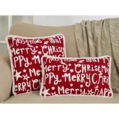 Celebrate the season and create a cheerful, joyful holiday home with this festive Merry Happy Christmas Throw Pillow. Grab a few and give your entire home an instant infusion of the holiday glee. The bright red and white color scheme creates a beautiful contrast using traditional holiday colors, which makes it easy to fit and pair.