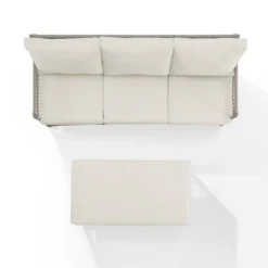 Create the look of an island retreat with the Thatcher 2pc Sofa Set. This set features sturdy steel frames wrapped in beautiful all-weather resin wicker and thick weather-resistant cushions. The coffee table ottoman is designed with versatility in mind. Add extra seating or prop up your feet with the included cushion, or remove the cushion to reveal a wicker tabletop perfect for resting a cool drink on a warm day. Both stylish and functional, the Thatcher Sofa Set will have you lounging outdoors in sophisticated comfort.