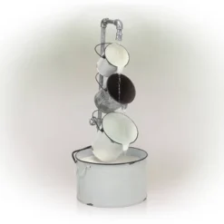 Add a touch of old-fashioned whimsy to your lawn with the Alpine Corporation 33″ Tall Rustic Metal Pails Fountain Yard Decoration. This vintage floor fountain provides a tranquil and rustic addition to your living space, bedroom, porch, backyard, or lawn. Constructed from durable metal with a classic cream white look and realistic textures, the fountain is weatherproof and resilient. This lawn statue will bring a touch of natural beauty to your outdoor space. Featuring metal pails, this fountain adds a classic Americana look to your home’s outdoor space. Relax to the sounds of the soft, natural water flow as it trickles down. Not only will the fountain provide you with serenity, it will also attract birds to your outdoor area, which in turn promotes healthy gardens. This water fountain provides a timeless addition to your indoor living area, courtyard, patio, or yard, and gives your garden visual interest with its vintage style. For quick installation and convenient operating, the fountain includes all necessary parts, as well as a pump, to begin creating an outdoor oasis. This standing fountain measures 13″L x 14″W x 33″H and includes a one-year manufacturer’s warranty from date of purchase. Alpine Corporation is one of America’s leading designers, importers, and distributors of superior quality home and garden decor products. Alpine’s award winning in-house design team continuously develops new and innovative “statement pieces” for your home and garden. Your outdoor living spaces will be the envy of the neighborhood with our wide assortment of fresh, fashionable and contemporary products, from beautifully crafted solar garden stakes featuring patented motion and fiber optic lighting technology to gorgeous glass and glow-in-the-dark birdbaths and feeders.