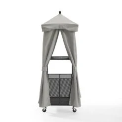 The Grady Towel Valet offers mobile poolside organization. Featuring a powder-coated steel frame and sturdy caster wheels, the towel caddy can move wherever it’s needed. The open shelf keeps dry towels close at hand, while the bin beneath is a perfect hamper for wet towels, keeping your deck free of clutter. A polyester cover protects your towels from changes in weather or a rogue splash, making the Grady Towel Valet a must-have for the swimming season.