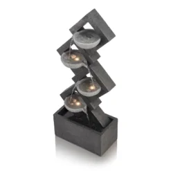 Add modern style to your indoor/outdoor space with the Alpine Corporation Soothing 4-Tier Zen Fountain with LED Lights. With this high-quality fountain, you can create a meditative, relaxing atmosphere, even in an urban jungle. The contemporary and stylish two-tone stone like design looks great in your garden, patio, deck, porch, or indoor space. Take in the tranquil sounds of the water gently cascading down the 4 pots to create a calming environment. LED lights in each of the tiers illuminate your space, drawing attention to the relaxing water pools day or night for added ambiance. The polyresin construction is weather-proof, rust-resistant, and durable for years of quality use. To use, simply plug in to an outlet, fill lower level with water, and watch as the interior pump with 6 ft. cord length, creates a lovely water flow reminiscent of a trickling stream. With a 1-year warranty, you can be confident in the quality of your purchase. Fountain measures 16″L x 8″W x 39″H for use in your home or in yards of any size.