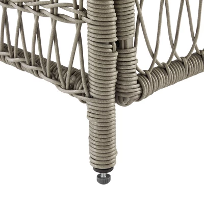 Create the look of an island retreat with the Thatcher 3pc Armchair Set. This set features sturdy steel frames wrapped in beautiful all-weather resin wicker and thick weather-resistant cushions. The coffee table ottoman is designed with versatility in mind. Add extra seating or prop up your feet with the included cushion, or remove the cushion to reveal a wicker tabletop perfect for resting a cool drink on a warm day. Both stylish and functional, the Thatcher Armchair Set will have you lounging outdoors in sophisticated comfort.