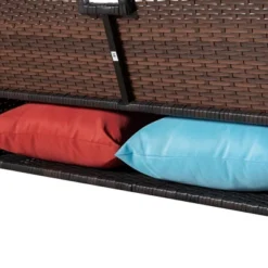 - Sectional wicker sofa set include 2* bench double seat; 1* corner chair; 1* table with 5* seat cushion; 5* long back cushion, 1* short back cushion and 2* pillows.