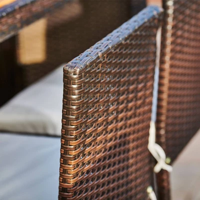 - STURDY: This set is made of durable metal, rattan and Acacia wood making it lightweight, yet sturdy for outdoor use and is easy to clean with a damp cloth.