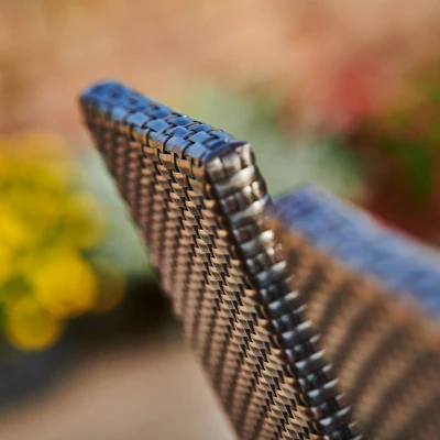 - WEATHER RESISTANT: This patio set is made of dark woven rattan that is UV and water resistant making it perfect for outdoor use. The strong Acacia wood tabletop allow rain to run through the slats.