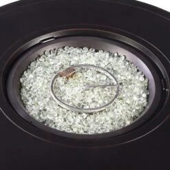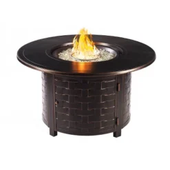 Whether your outdoor retreat is located in the mountains, on the coast, or somewhere in between, this fire table set will extend your evenings with friends and family around the fire. With this addition you can enhance your outdoor setting with even more ambiance and relaxation. This fire table set comes with an Outdoor Aluminum 44 in. Round Fire Table Set with Four Deep Seating Swivel Rocking Chairs, Fire Beads, Lid, Propane Tank Cover and Table Fabric Cover. The dimensions for the fire table are: 44″ L x 44″ W x 24.5″ H, 71.5 lbs. Each chair dimensions are: 28.4″ L x 33″ W x 37.8″ H, 29 lbs. The chair seat is 12.6″ H from the seat to the floor.