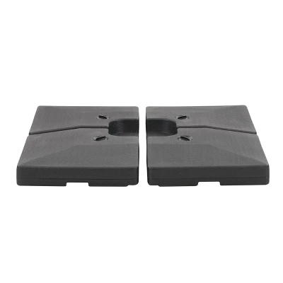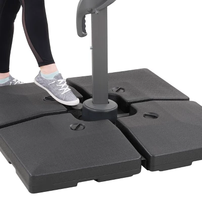 - 4 heavy-duty, dark gray plastic weights make up this base designed for heavy offset and articulating umbrellas