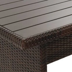 This 6-piece outdoor conversation set is the perfect companion to a summer barbecue – other than good friends to enjoy it with, of course. All this patio furniture is crafted from rust-resistant steel wrapped in resin wicker with a 2-tone weave. The outdoor seating is topped with cozy cushions with water- and fade-resistant zip covers. The dining table features a metal slat top.