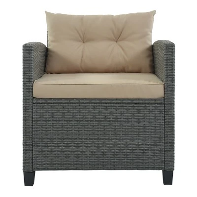 - [Handcrafted Rattan] The hand-woven rattan is durable, and UV resistant with a natural look but is made of resin. The wicker sofa set features high-quality gray rattan hand woven in a stylish pattern over a durable powder-coated steel frame.