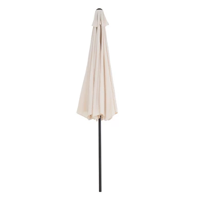Entertain guests with an attractive piece of outdoor decor that also provides quality sun protection with this Patio Umbrella, 9 Foot Crank by Pure Garden. The easy to use hand-crank opens and closes the umbrella in seconds to block sunlight, so you can relax in the shade during hot summer days. In addition, this umbrella is made with durable steel ribs and features a sturdy aluminum pole that fits in most deck tables or umbrella stands for superior value while enduring heat, wind, and rain.