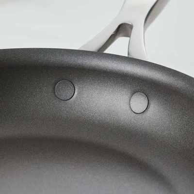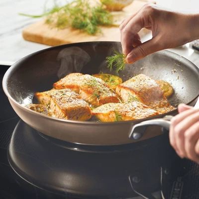 - PREMIUM DURABILITY: Hard anodized toughness with a thick, edge-to-edge stainless steel base for a nonstick skillet that works on any stovetop, including induction. Plus the versatility to go oven safe up to 500°F.