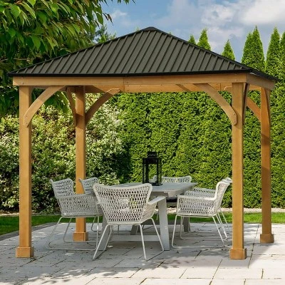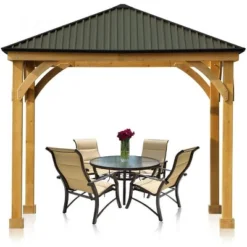 - Mental Top with Gutter – Rust-resistant powder coated green steel top roof provides a water-proof and UV protected cover. The metal material is strong enough to withstand harsh weather. Pitched roof with gutters directs water accordingly reducing the load weight on the roof top.