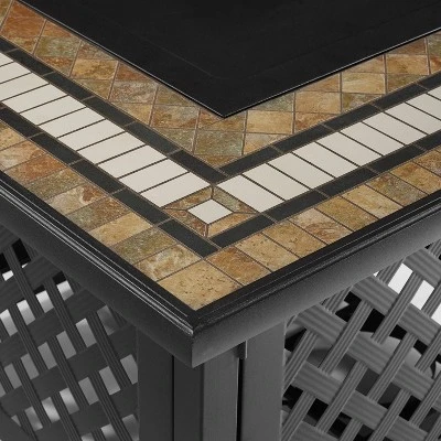 • Fire Table with Tiled Stone Top comes with a lid and protective cover