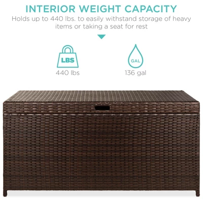 Best Choice Products 136 Gallon Large Deck Storage Box For Indoor Outdoor Furniture, Cushions, Pool Accessories - Brown
