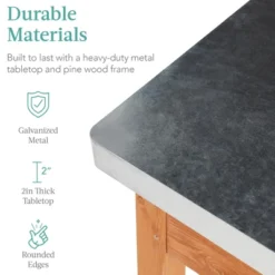 - Durable MaterialsBuilt to last with a heavy-duty metal tabletop and pine wood frameGalvanized Metal2in Thick TabletopRounded Edges