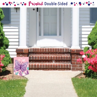 Beautiful Butterfly Garden Flag INCLUDES 1 polyester fabric material garden flag in a vertical pennant shape that measures 12 inches wide and 15.25 inches tall. (Flagpole Not Included) Cute Decor: Welcome houseguests with this weather resistant Beautiful Butterfly Garden Flag. Printed double-sided, Pastel Butterflies Garden Flag looks great placed close to your home, added to flowerpots, or displayed next to your favorite garden gnome decoration. Yard & Home: Beautiful Butterfly Garden Flag is machine washable and fade-resistant, allowing you to easily display in your outdoor lawn or inside your home for a fun Baby Shower or Birthday Party decoration. The small and cute size helps make this a great housewarming gift for a loved one’s deck, patio, porch, or yard. High-Quality Supply: Beautiful Butterfly Garden Flag is professionally printed double-sided on 100% polyester material. With a 1.625-inch flagpole opening, easily & quickly display the vibrant Floral Butterfly Garden Flag. Please Note: Flagpole Not Included – will fit most standard-sized garden flag stand flagpoles. Printed In The USA: Beautiful Butterfly outdoor lawn and home Garden Flag is designed and manufactured at our Wisconsin facility using materials that are Printed in the USA – Fabric Flag Made in China.