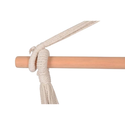 Swing and lounge the day away in this free-standing hammock chair. Made from polyester-blended fabric for the ultimate in comfort, durability, and style. The cotton fiber ropes and hardwood frame are designed to withstand the elements, while creating a fun, relaxing environment for any indoor or outdoor space. Pair with our Boho Breeze Swinging Bungalow Chair Frame for a complete set. Includes fabric hanging chair. Stand is not included.