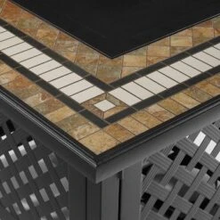 Spend warm summer days and cool summer nights with the Bradenton 6Pc Sofa Set with fire table. The sofa, armchairs, and ottomans are made from all-weather resin wicker with cushions covered in solution-dyed polyester. Constructed from sturdy powder-coated steel, the fire table offers a place to rest your drink or warm your hands. The tiled stone top and included lid create a larger tabletop when the fire component is not needed. Controls for the gas and a rack for a propane tank are located inside the table’s lattice panel base, keeping them close at hand but out of sight. Relax in comfort with the Bradenton 6pc Sofa Set.