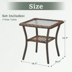- Patio End Table:The perfect compact accent for any seating arrangement, this versatile patio end table is ideal for small spaces. Its 19.7-inch cube design fits effortlessly beside lounge chairs, sofas, and loveseats, providing a stable surface for drinks, snacks, and books right where you need it.