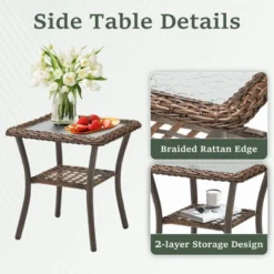 - Wicker Patio Side Table:Crafted with premium all-weather resin wicker, this wicker patio side table is built to last. Its elegant hand-woven texture and neutral rattan hue resist fading, moisture, and rust, ensuring it remains a beautiful and durable addition to your deck, porch, or poolside for years to come.