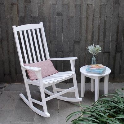 Sit back, relax and rock your worries away with the Alston Wood Porch Rocking Chair from Cambridge Casual. Thanks to the durable weather-resistant construction, you can enjoy the comfort of this wood rocking chair during any season as well as the classic style it brings to the decor on your front porch or patio. Add an accent pillow in a vibrant pink, yellow or orange fabric to keep things bright and cheerful all year long. Draping a nice throw would be nice too during chilly season.