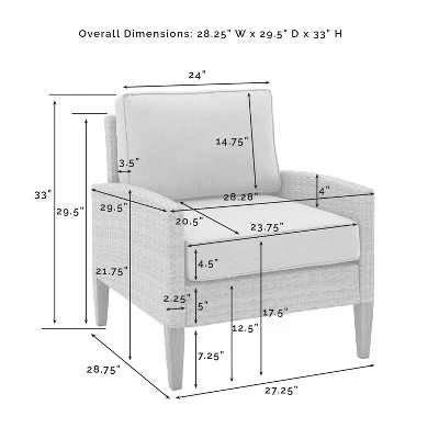 • 4.5″ thick seat cushion and 3.5″ thick back cushion