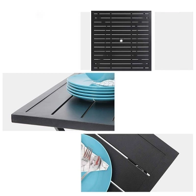 - Stylish modern metal slat design makes the table and chairs look simple and stylish so that it can perfectly matches your home or patio decor and style;