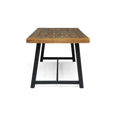 - MODERN SLATTED TABLE DESIGN: The spacious tabletop features a tastefully slatted design and a two-tone finish, blending contemporary elegance with rustic charm. With a width of 70.75 inches, it easily accommodates six guests for outdoor dining.