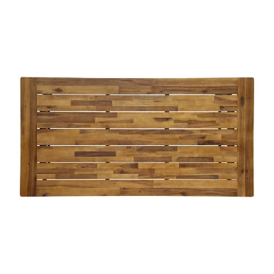 - PREMIUM ACACIA WOOD CONSTRUCTION: Crafted from solid acacia wood, this dining set offers natural durability and weather resistance. The sandblast teak finish enhances its rich, organic look, making it a timeless addition to your outdoor space.