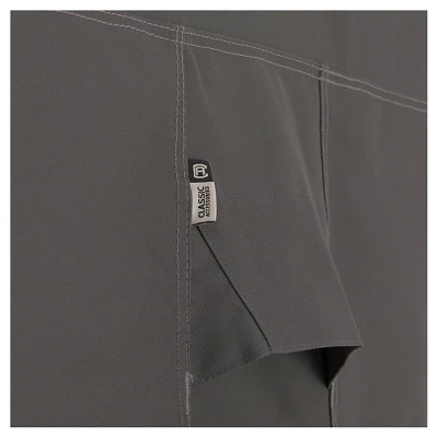 If you live in an area where you can’t enjoy your patio furniture year-round, invest in a cover that will protect your round table and chairs from wind, snow and mildew. The Ravenna Round Patio Table and Chairs Cover from Classic Accessories is a high-quality outdoor furniture cover that will keep your table and chairs secure and unharmed. The crack- and water-resistant table cover shuts out snow and rain, in addition to wind, with unique side vents that keep the cover from blowing up in strong winds. Adjustable hem cord, straps and handles let you find the best fit to keep your furniture in place through the winter. Note the large cover is not a square, but it designed to fit a square table and chair set. *Please refer to your furniture’s care instructions as some finishes, sealants or coatings could react to PVC backed covers. To reduce this possibility, the use of a support pole (sold separately) is recommended to elevate the cover.