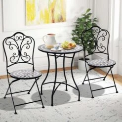 With heavy-duty metal frame, the table and chairs are built to withstand the test of time. And the chairs with backrest provide utmost comfort for all your gatherings. The standout feature of this bistro set is the beautifully designed mosaic patterns. The intricate patterns and vibrant colors add a touch of elegance and charm to any space. When not in use, the chairs can be folded to save space, which are also portable. Overall, the mosaic bistro set is a perfect combination of style, functionality, and durability.