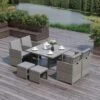 If you do not need to eat outdoors, just push the loveseat and 2 armchairs under the table in order to save your space. Additionally, the compact dining set provides spacious tabletop and 4 seats for gathering around and enjoying delicious dinner together. In the summer, you can insert an umbrella in the 1.9” umbrella hole. What’s more, this outdoor dining set is made of solid acacia wood, all-weather PE rattan and anti-rust galvanized steel to ensure its durability and stability.