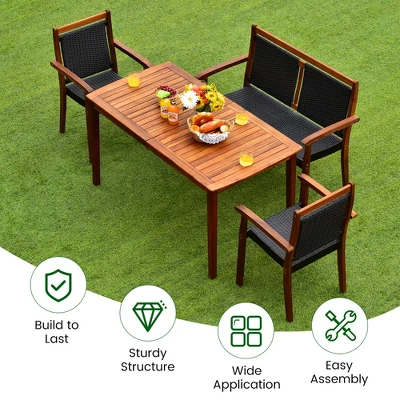 - 4-Piece Space-Saving Outdoor Dining Set: This patio dining set includes a rectangular dining table, large loveseat and 2 comfy armchairs, which creates a cozy place for 4 people sitting together and enjoying delicious food. Besides, the modern design blends with your garden, backyard or deck perfectly.