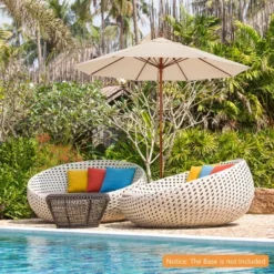 - Notice: The base is not included and this patio umbrella requires a weighted base for adding stability and safety. Also, it can be paired with an outdoor dining table set to enjoy your outdoor dining time with your family or friends (diameter of the wooden pole: 1.5”). In addition, we recommend folding and storing the sun umbrella when not in use for a long time or in extreme weather conditions.