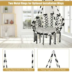- Multiple Hanging Options: This swing chair is designed with two anti-rust metal rings that can be hung separately on the beam or together in the hammock stand. Besides, you can also hang it from ceiling and tree branches with the help of professional hanging kits.