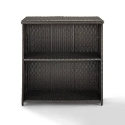 Elevate your outdoor entertaining with the addition of the Palm Harbor Outdoor Wicker Bar from Crosley. This outdoor bar allows you to bring bar entertaining poolside, on the patio, deck or garden space with ease. The ample serving surface and additional storage come together to create the ultimate outdoor bar area. Crafted from weather-resistant wicker and a powder-coated steel frame, this piece is a must for any outdoor entertainment space.