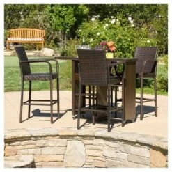 These Christopher Knight Home Delfina 4 pk Wicker Patio Barstools are made out of tightly woven all weather wicker with a strong powder coated iron frame, allowing them to withstand outdoor weather while still looking as perfect as the day they arrived. These barstools have a backrest, armrests and foot rails making them very comfortable. Add extra seating to your backyard, garden or patio with these Christopher Knight Home Delfina 4 pk Wicker Patio Barstools. Your guests will thank you.